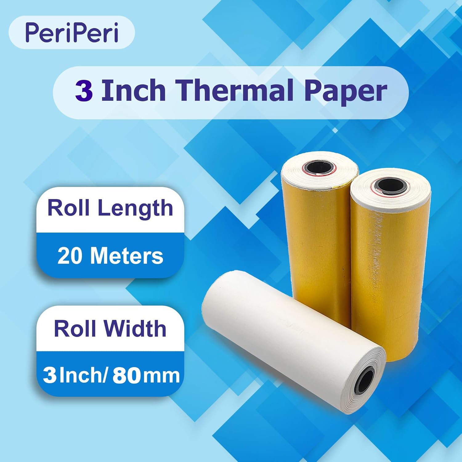PeriPeri 3 Inch Thermal Paper Rolls For All 3 Inch Printer Machines. 80mm(Width) x 20meter(Length). Pack Of 5 Rolls