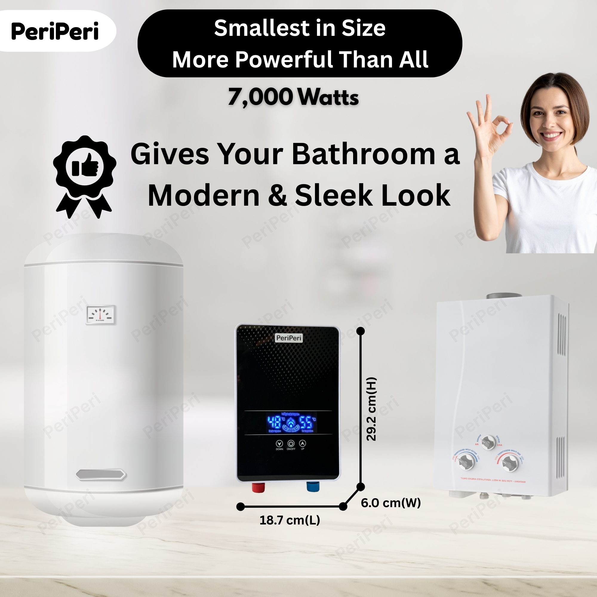 🏠 Compact Modern Design – Gives Your Bathroom A Sleek And Modern Look. The Space-Saving Design Fits Perfectly In Bathrooms, Kitchens, And Apartments Where Traditional Geysers Don’t. You Can Install It At Any Angle.