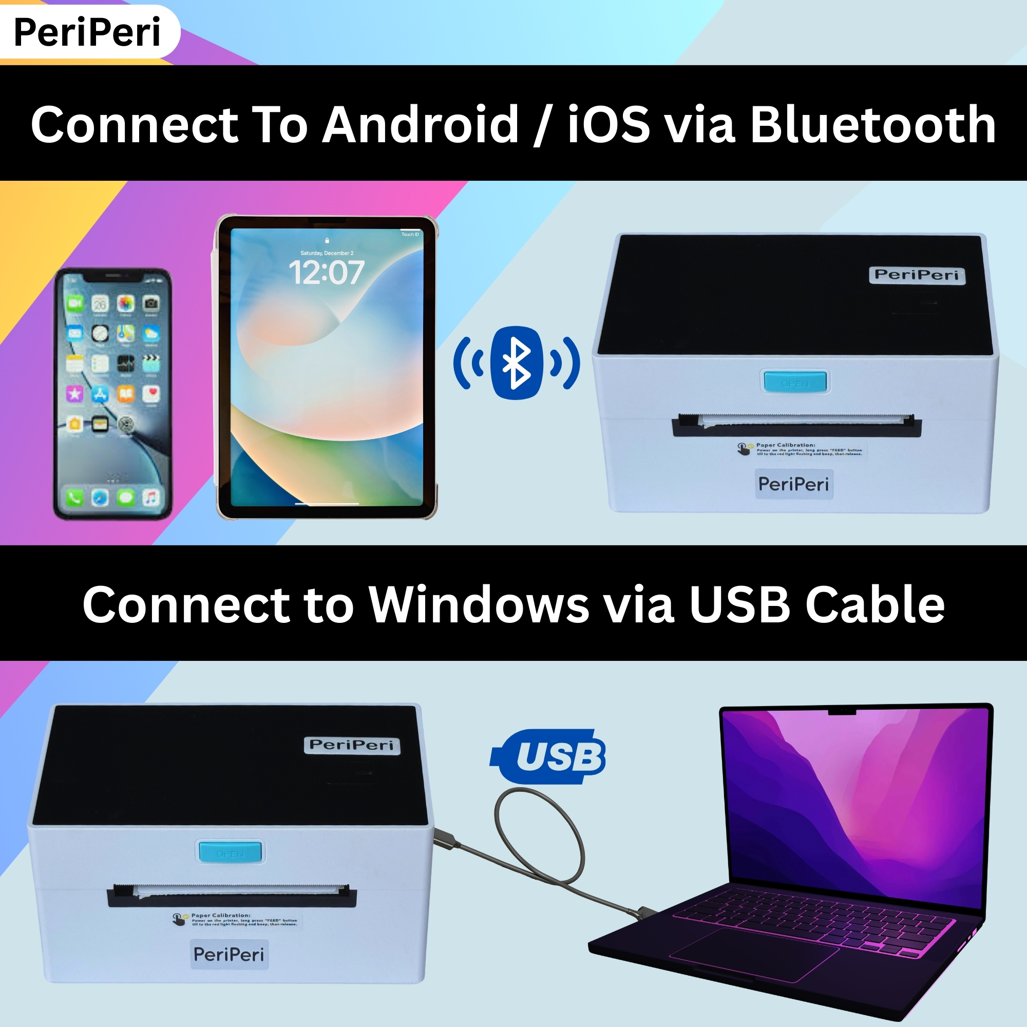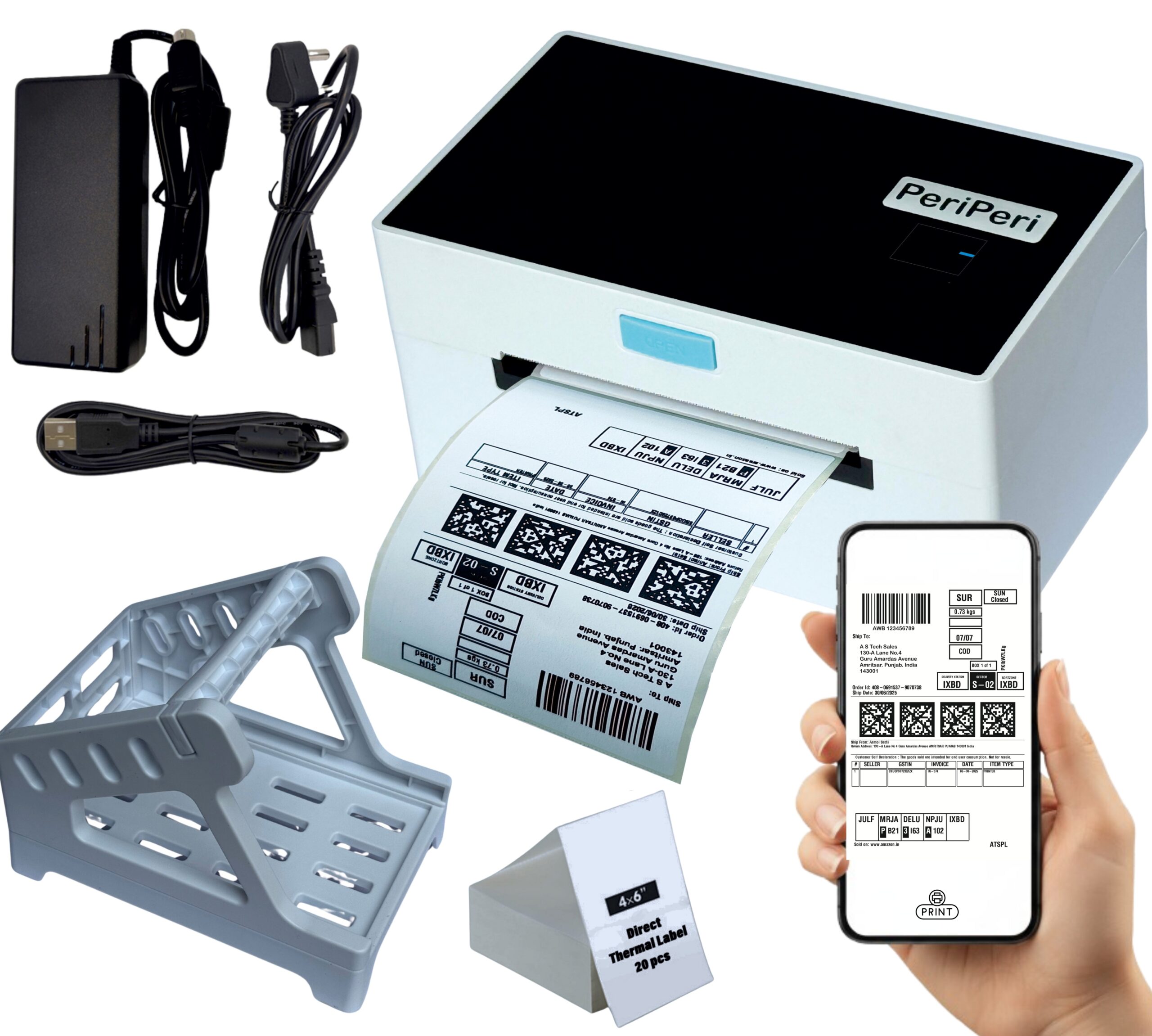 - 【Compatible With All Platforms】 PeriPeri Label Printer Can Print All Small & Major Shipping and E-Commerce Platforms Labels Like Amazon, Flipkart, Meesho, Myntra, Nykaa, Snapdeal, IndiaMART, JioMart, Shiprocket, Nimbuspost, Delhivery, Bluedart, DTDC Etc