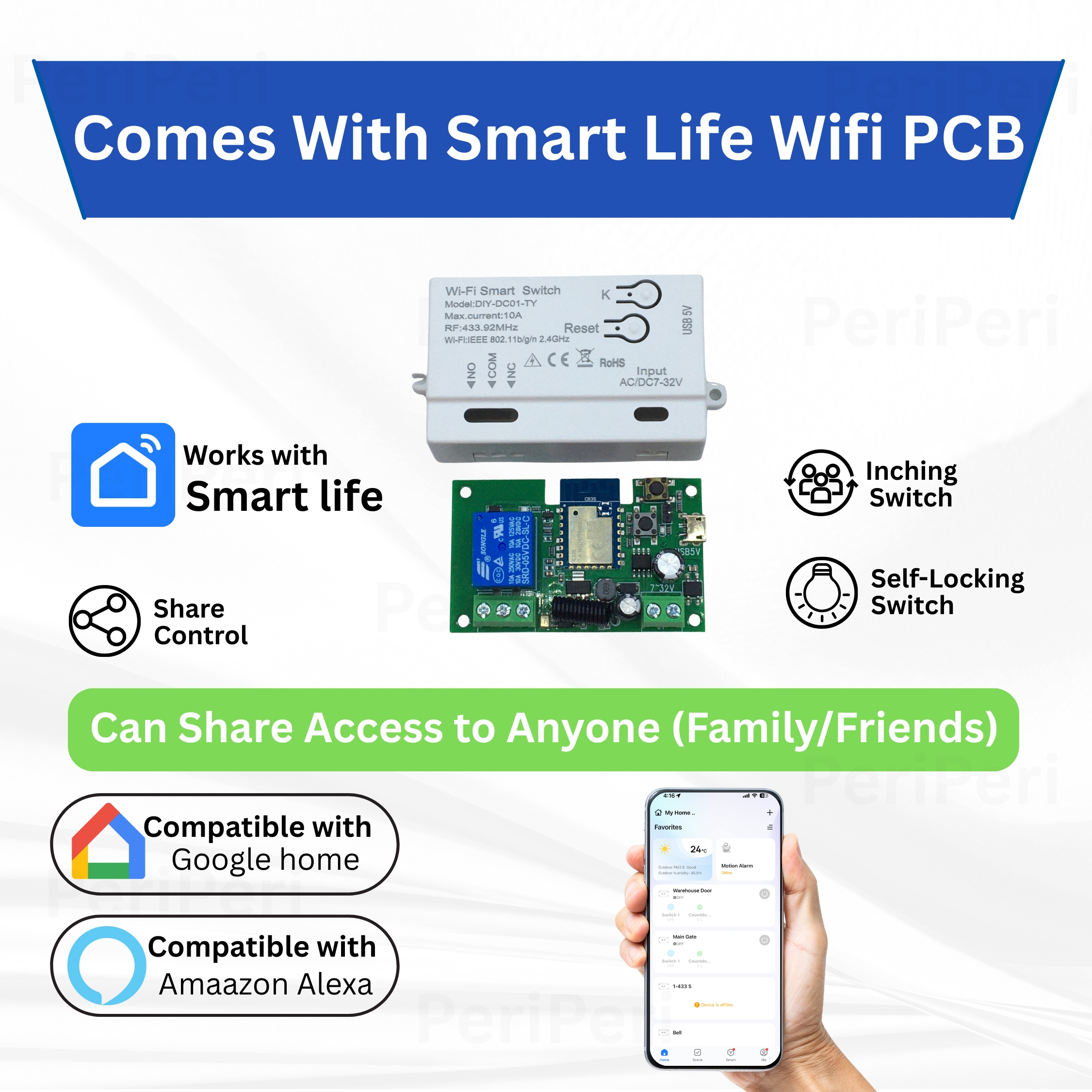 - (Product Comes With): Electronic Motorised Lock, Wifi Smart Motherboard, Remote, Wiring & Adopter.
